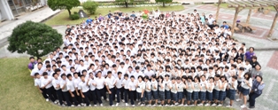 | ▲中庭で全校生徒が記念の集合写真を撮りました。すし詰めです。 |