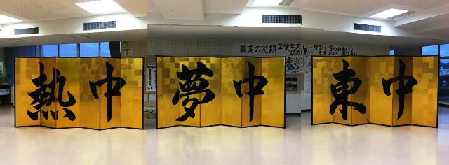 ![]() ▲式典を飾る「根中・夢中・東中屏風」の生徒共同制作も順調に進んでいます。 |