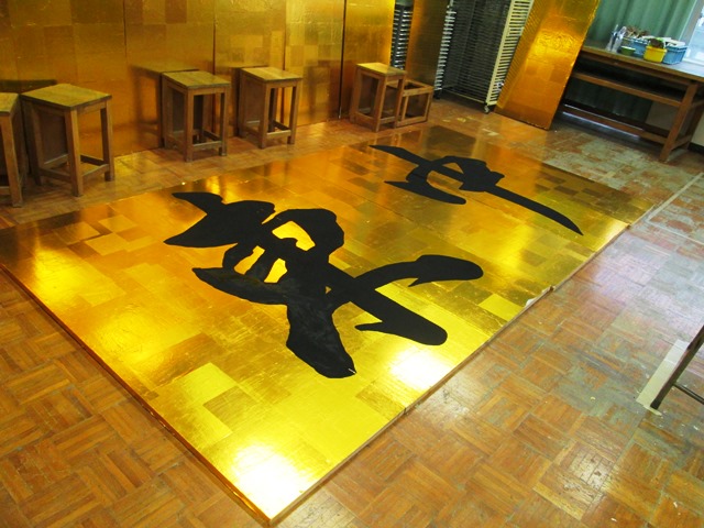 | ▲全生徒で金紙を貼り付けた記念の屏風が完成しました。12月12日 |