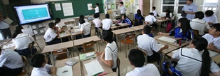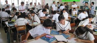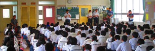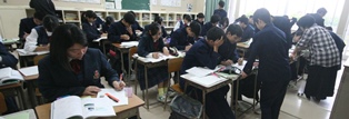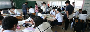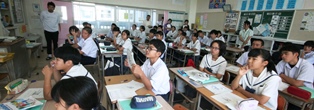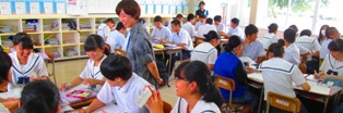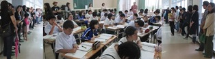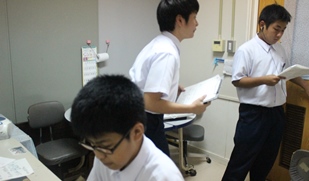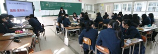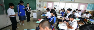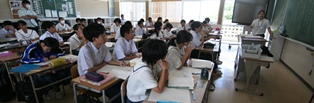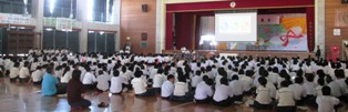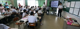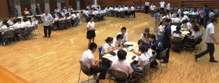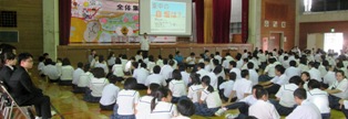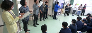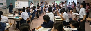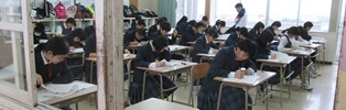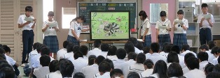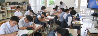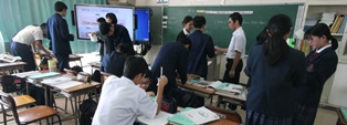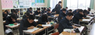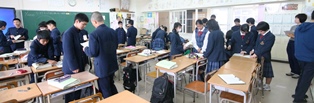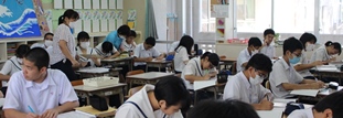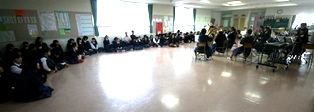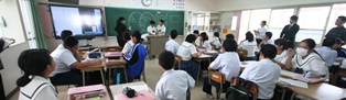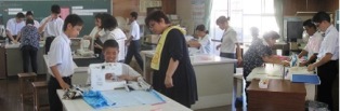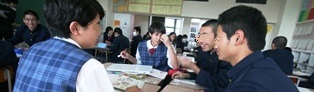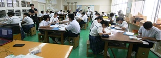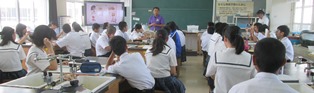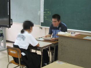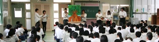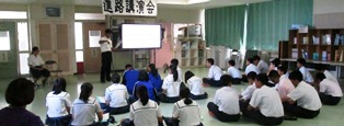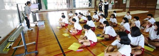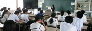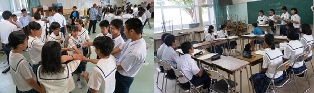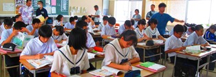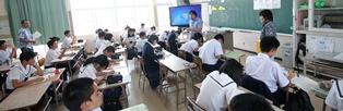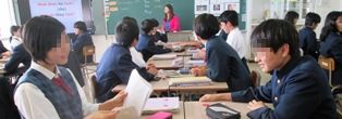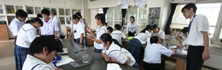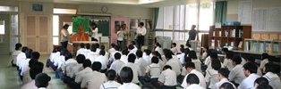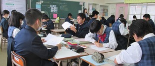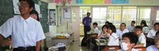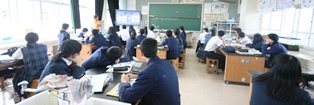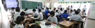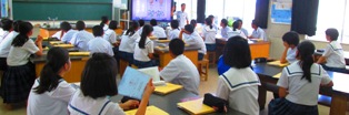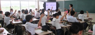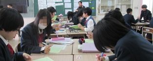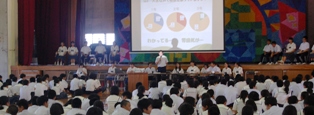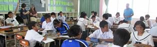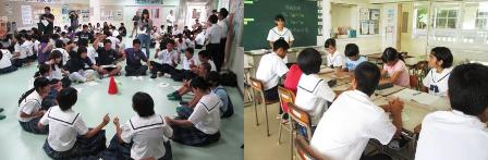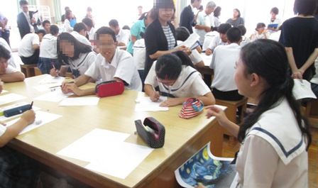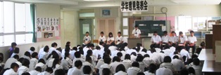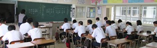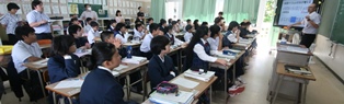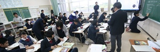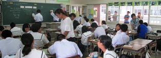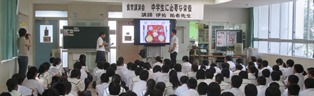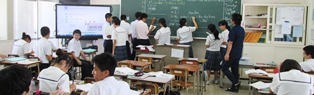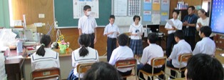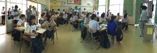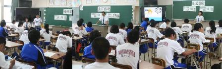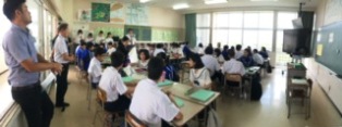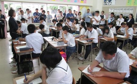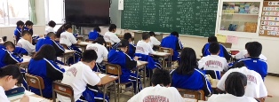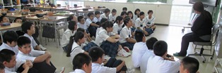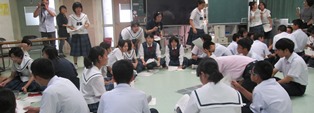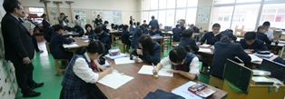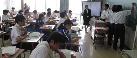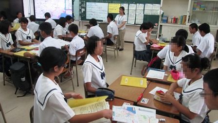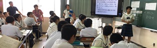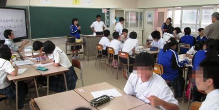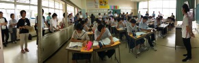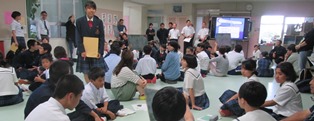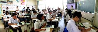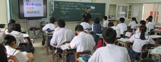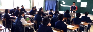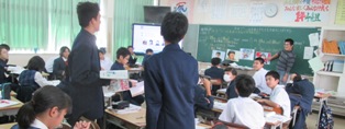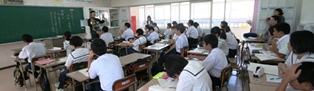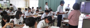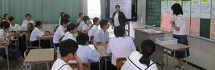 ●本校で初任者研修が行われ、3年1組(担任:大城すえの)の学級活動の授業が公開されました。来校した33名の先生方は、生徒達の活発な学習状況に感心していました。