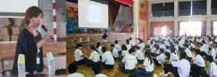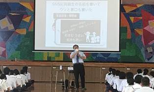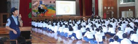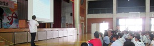 | ●12月23日(水)に第1回家庭教育学級を開催。モバイルプリンスの島袋コウ氏を招いて、インターネット・SNSの正しい使い方を講話して頂きました。質問も多くあり、ネット社会の仕組みや依存の話等、子ども達にも聞かせたいとの声が聞こえました。 |