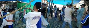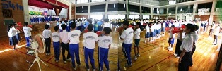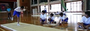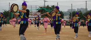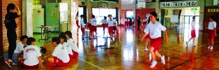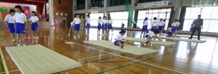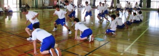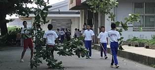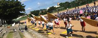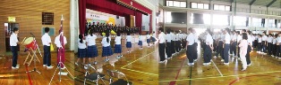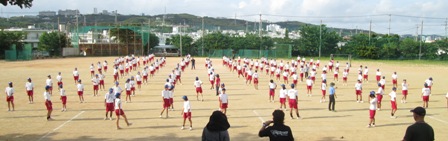 ●放課後、体育祭に向けてた練習を頑張っています。体育館では1・2年生全員による「ダイナミック琉球」、運動場では3年生による「エイサー」の練習が行われました。