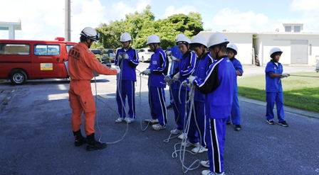 ●5時間目に、火災訓練を実施しました。全員が5分以内に避難することが課題です。東部消防本部の皆様、ご指導、ありがとうございました。