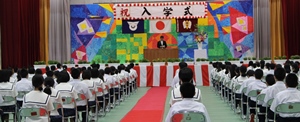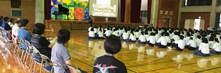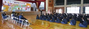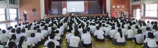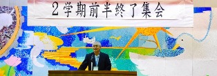 ●一学期後半開始集会を行いました。校長先生から、「人は自分が願ったとおりに成長する」「一人一人は風車、風を受けて、蓄えた力を発揮しよう」など、激励の言葉を受け、それぞれの決意を新たにしました。 →関連