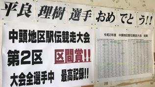 | ●地区駅伝大会で第2区を走った平良理樹君が見事に区間賞をゲット!!努力して頑張れば、結果は付いてきます。素晴らしいです。今後の励みになりますね。おめでとうございます。 |