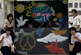 | ●西原町平和事業の一環として「平和」をテーマにチョークアートを製作しました。文芸同好会のメンバーでデザインから製作まで取り組み、とても素敵な作品となりました。12月10日(金)まで中央公民館で展示しています。ぜひ、足を運ばれて作品を鑑賞して下さい。 |