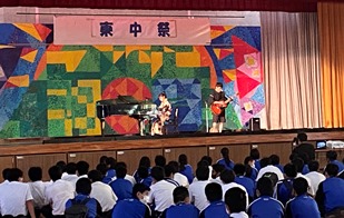 | ●11月12日(金)に東中祭が行われました。舞台での発表へ向けて抽選会を行い、観客席の密を避けるための工夫等、生徒会執行部が企画運営を行いました。完成度の高い演目が披露され、会場は大いに盛り上がりました。舞台上のパフォーマンスと観客が一体化した素晴らしい時間でした。 |