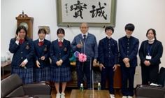 ●今年度も(株)新中糖産業さんより図書費の寄贈がありました。新・旧図書委員5名と顧問で感謝状と生徒手作りのくす玉、美化委員よりのマリーゴールドをお礼に渡してきました。会長さんと、「読書の大切さ」や生徒一人一人の「将来の夢」について語り合いました。