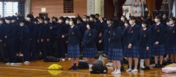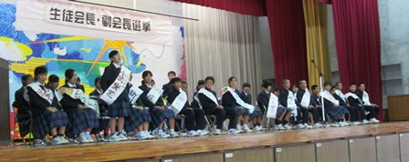 | ●12月1日に令和4年度生徒会選挙が行われました。次期生徒会をリードする会長・副会長を選ぶべく、真剣に立候補者の話を聞き、大きな拍手を送っていました。執行部の皆さん、準備等大変お疲れ様でした。討論会や選挙活動を通じて自立貢献の精神を立派に受け継いでいます。 |