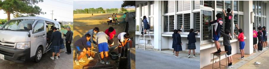 | ●去る6/28(日)に3学年PTA親子ふれあい美化作業が行われました。草刈り機や軽トラックを提供していただき、作業もはかどりました。お陰様で校舎の敷地内がきれいになり、学習環境が整いました。保護者の皆様に感謝です。 |