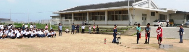 | ● 10月26日(月)に火災避難訓練を実施しました。整然とした移動、整列に東部消防職員からお褒めの言葉を頂きました。実際に消化器を使用して訓練も行いました。いざという時も訓練の時のように行動したいですね。 |