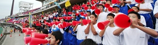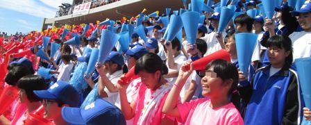 ●県総陸上競技場で、地区陸上(中頭Bブロック:応援生徒総数9183名)が盛大に開催され、生徒たちは応援リーダーの指揮で、他校の選手にも惜しみない、力強い応援を送りました。→関連