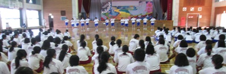 ●放課後、全学年女子によるダンス発表会が行われました。各学級が独自の振り付けやフォーメーションを工夫し、皆の手拍子に合わせ楽しくダンスを披露しました。