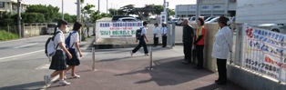 男子バスケ部による朝の挨拶運動 7月3日 |