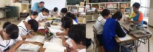 ●琉大からの教育実習生、松川絵美先生の国語(古典:徒然草)の研究授業が行われました。2年2組の生徒たちは、積極的に前に出て、自分の解答を板書していました。