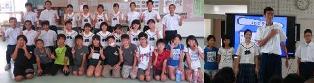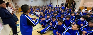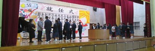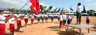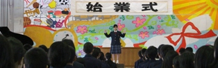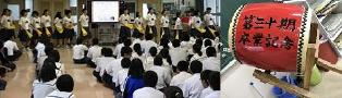 ●表彰朝会の後に、創立30周年記念事業実行委員長の仲里慎二さん(PTA会長)が、「皆さんも30周年を盛り上げて下さいね」と呼びかけました。
