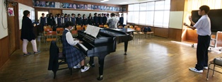 | ●校内合唱コンクールへ向けて、昼休みや放課後の時間を活用し、練習しています。どの学級にもドラマがあります。心をひとつに、みんなへ感動を届ける歌声を目指して練習しています。学級の団結力がこの行事を通して高まります。 |