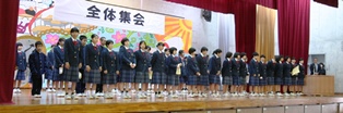 | ●新年あけましておめでとうございます 2学期後半がスタートしました。生徒の皆さんの元気で明るい姿を見ることができ、とても嬉しく思います。旧生徒会から引き継いだ新生徒会が張り切っています。抱負 |