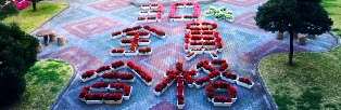| ●1日〈月〉の朝、中庭に突然現れたプランターで作られた文字。3年生の推薦内定者の皆さんが受検する仲間へ向けたメッセージです。熱い思いが伝わります。自分の夢実現へ向けての第一歩です。33期全員合格!応援してます! |