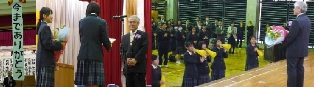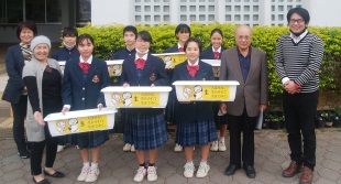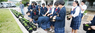 | ●中南部保護司会より、「社会を明るくする運動」の一環として、本校へプランターの贈呈がありました。美化委員の皆さんが受け取りました。花をたくさん咲かせて、学校を明るくします。ありがとうございました。 |