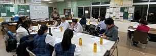 ●家庭科・山城春花先生の一人一公開授業がありました。3年3組のみんなは、地震で津波が起きたときの避難経路をまず自分で考え、グループで整理、理由をつけて発表し合いました。