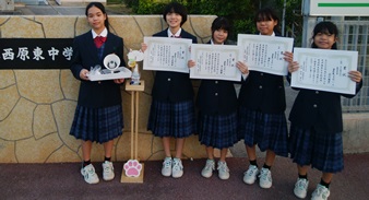 | ●去る14日(日)に沖縄県中学生新人駅伝競走大会が行われました。男子はバスケ部から選考されて出場、15位の成績。女子はバレー部から選考されて、9位の成績。特に3区を走った林梨杏さんの走りは見事で、4位の結果を出しました。 |