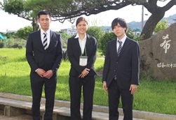 | ●8月28日より教育実習で西原東中学校にやってきました。左より金城和貴(数)さん、上原夕佳(英)さん、川満熙(美)さんです。東中の皆さんとたくさん関わっていきたいと思います。宜しくお願いします。 |