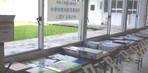 | ●令和3年度使用に係る教科書展が玄関前にて開かれています。部活動結成の帰りにでも、お立ち寄り下さり、ご意見を下さると有り難いです。 |