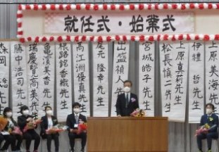 | ●4月7日に令和4年度の就任式及び始業式を行いました。吉田敬校長他18名の教職員が新たに赴任しました。東中の生徒の皆さんと楽しく充実した学校生活を送るために頑張ります。宜しくお願いします。今年度は職員も増えて、教職員体制もばっちりです。 |