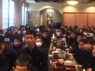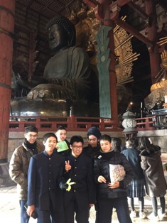 ・旅館での夕食、おいしくいただきました。体調不良の生徒はいません。 ・緊張感あふれるリーダーによる入館式を終えました。 ・17:55無事に旅館「こうろ」に到着しました。昨年1の2担任の池田先生も駆けつけてくれました。 ・冷たいのですが、天候にも恵まれ、コートを羽織らなくてもよいほど。スムーズな日程でホテルに向かっています。東大寺大仏殿を目にしたときは、生徒の口から思わず、「おーっ」と驚きの声があがっていました。鹿の糞に怯える生徒や鹿せんべいをあげて一緒に食べる生徒までいて、楽しんでいます。ただ、自由時間から急に冷え込んで、ぐっと寒くなりました。 ・日中は暖かいせいか、体調の悪い生徒はいません。みんな元気いっぱい。感情豊かな子どもたちの様子が、とてもほのぼのとして本当によかったという気持ちになっています。 |