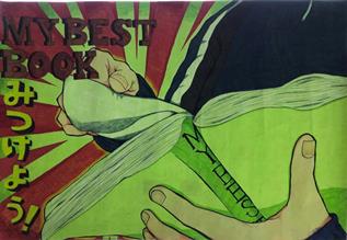 | ●校舎玄関ホールに掲示してあります。3年翁長瑞穂さんの作品です。絵を描くことが好きで、裏面にも多くのイラストが描かれていました。両面が見れるようにガラスに貼りました。描写の技量が素晴らしく、迫力が伝わります。 |   読書月間啓発ポスター