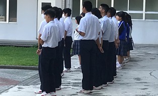 | ●表彰朝会が行われました。漢字検定準二級5名はじめ全国大会や九州大会で健闘した各部が表彰されました。また、同時に琉大、沖国大からの教育実習生3人の自己紹介もありました。 →関連 平成29年9月1日(金)