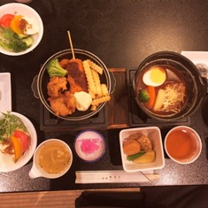 | ・18:00 夕食 | ・食後はお楽しみ「レク大会」19:45予定です。 ・大広間での夕食。メニューは豪華、すき焼きです。 ・自主研修全員無事に、笑顔、元気いっぱいで帰還し、入浴を済ませました。 |